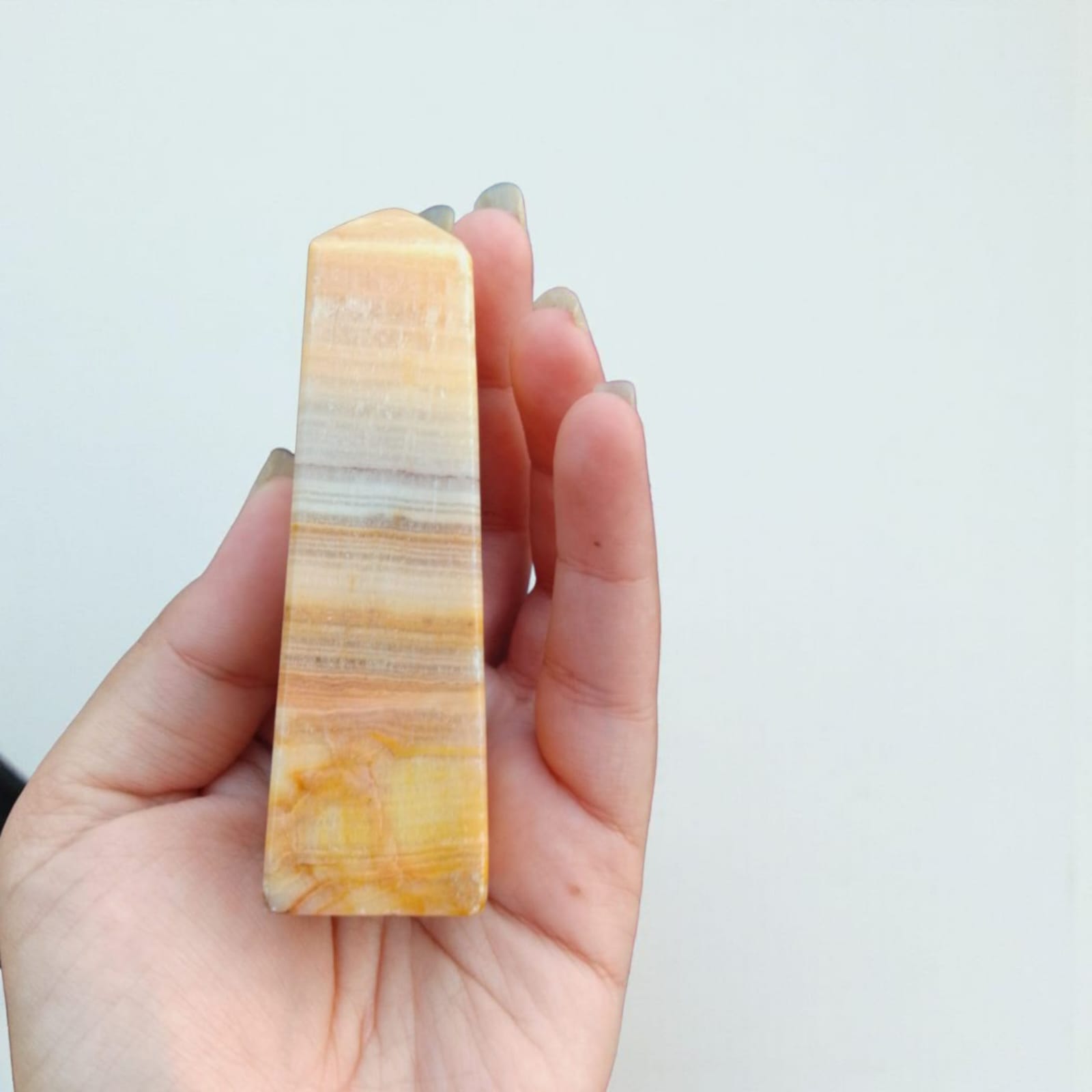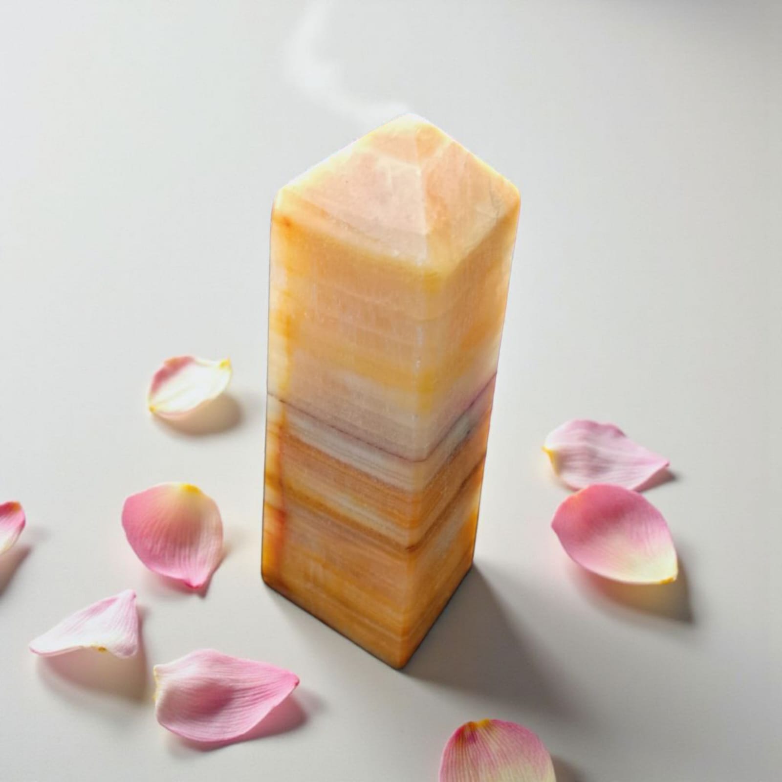 - Peach Calcite Tower: A steady pillar of comforting energy. Place it in your bedroom or meditation space to create a constant, gentle field of self-love and emotional safety. Its pointed end can be used to gently direct healing energy to the heart chakra during meditation.